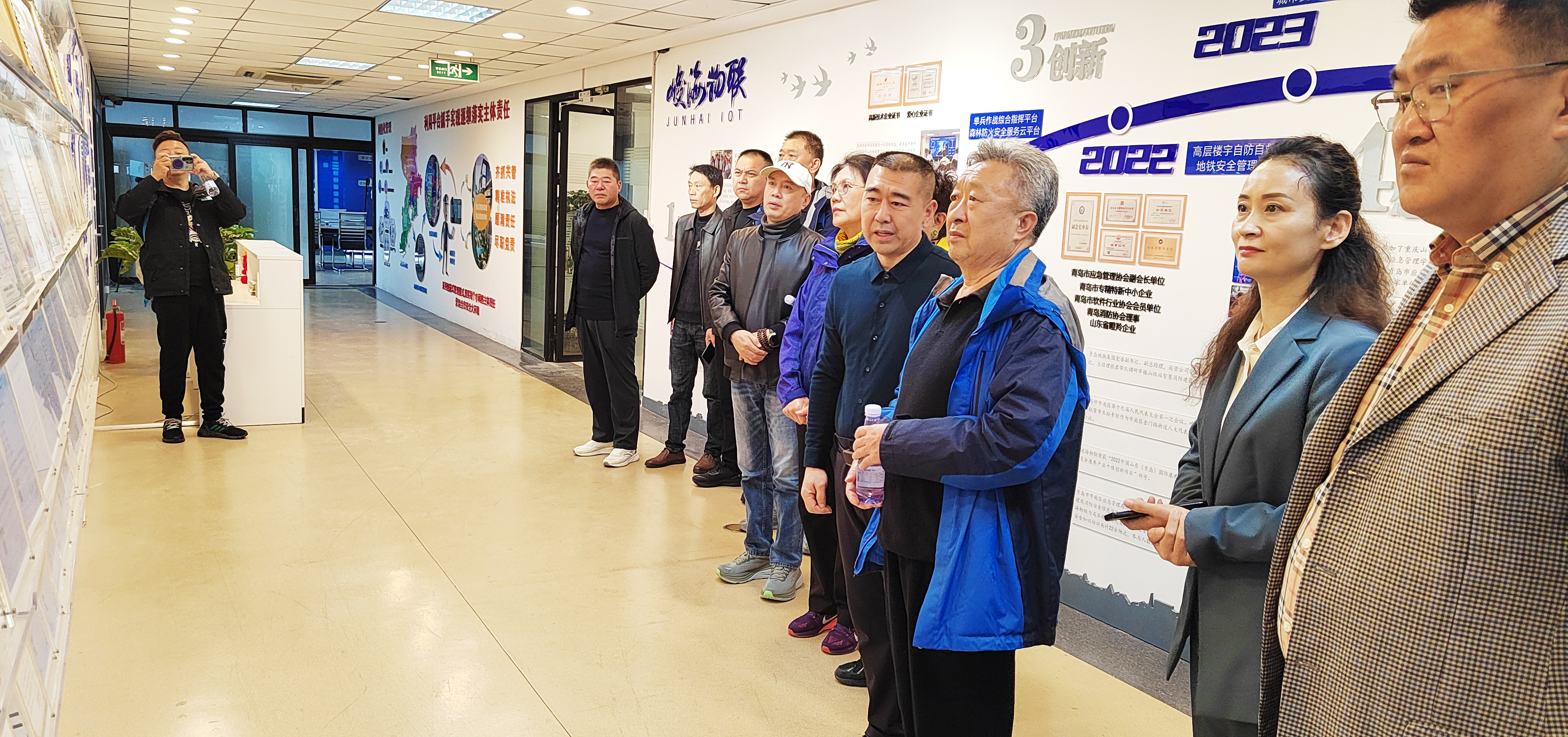 · 2024年11月,北京市消防總隊原政委杜文強一行,在相關領導的陪同下蒞臨峻海物聯參觀考察,峻海物聯總經理孫藝和青島市應急管理協會副會長孫素朋陪同接待。